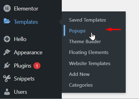 - WordPress valdymo skydelyje eikite į Templates → Popups.