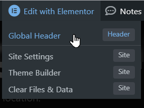 - Raskite „Mobile Menu“ (ar pan.) → Edit with Elementor.